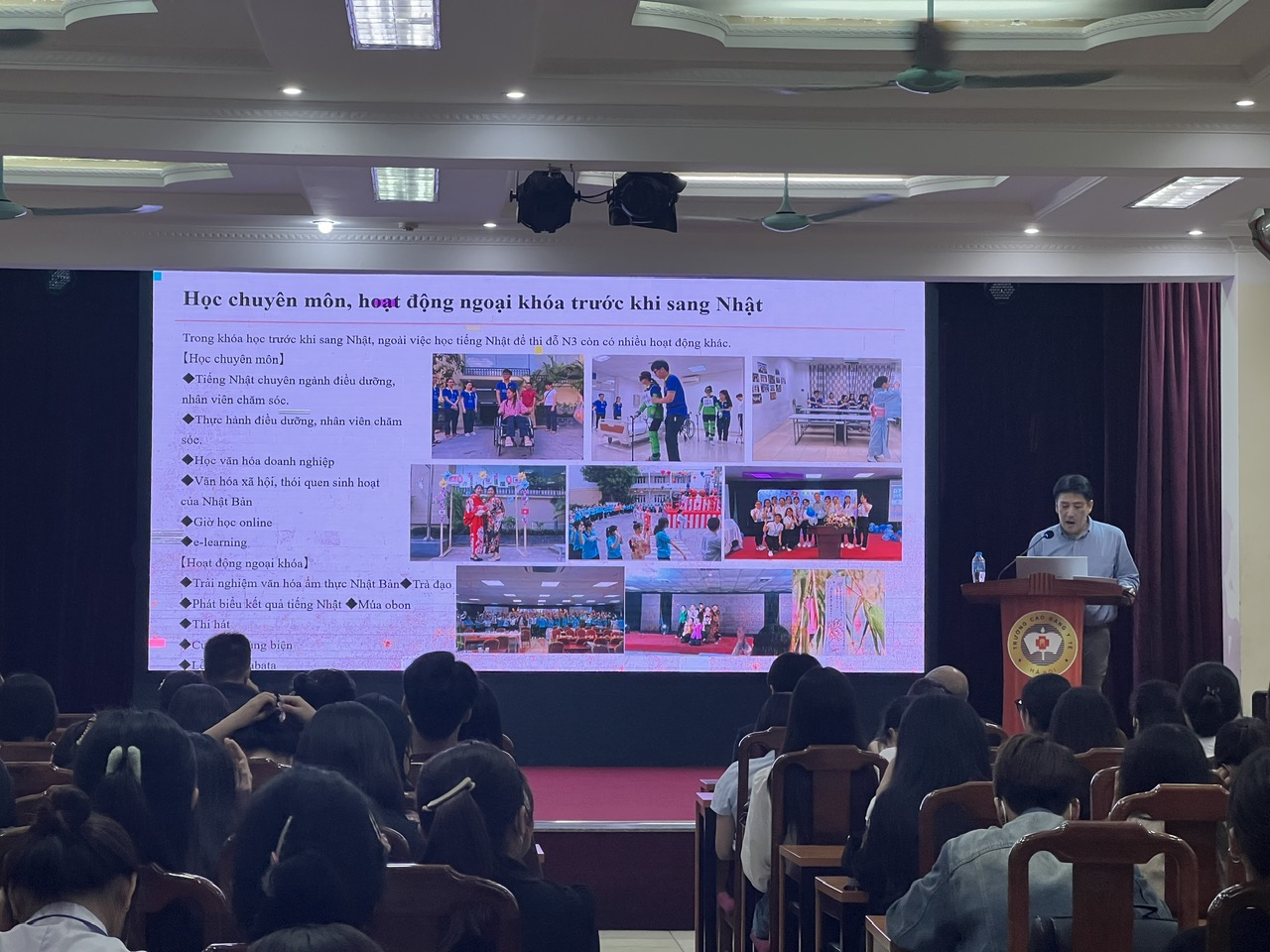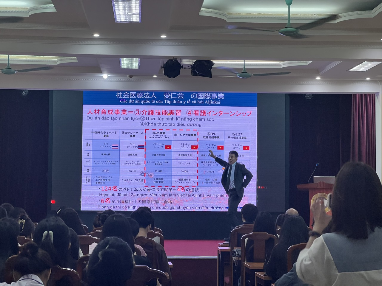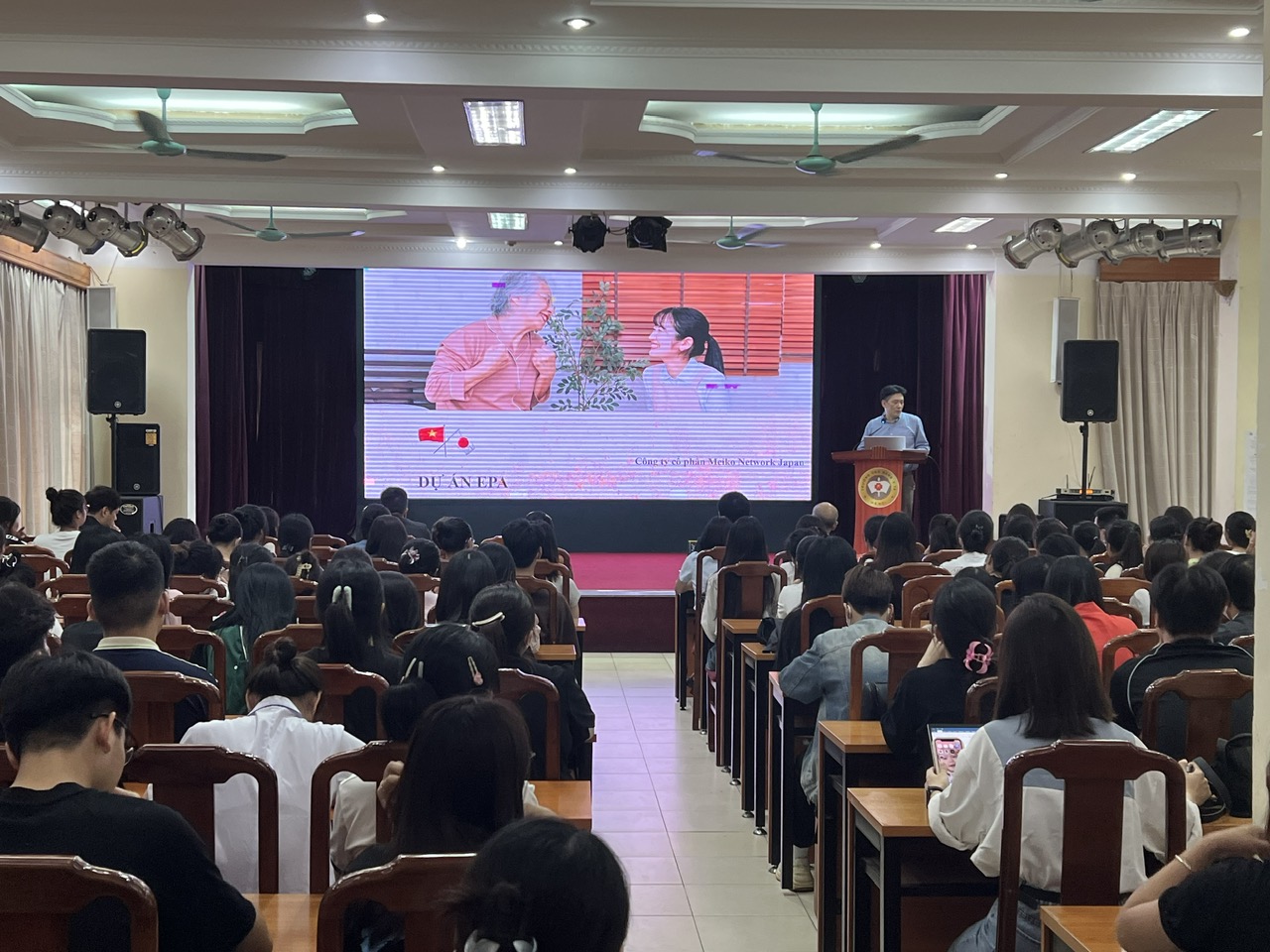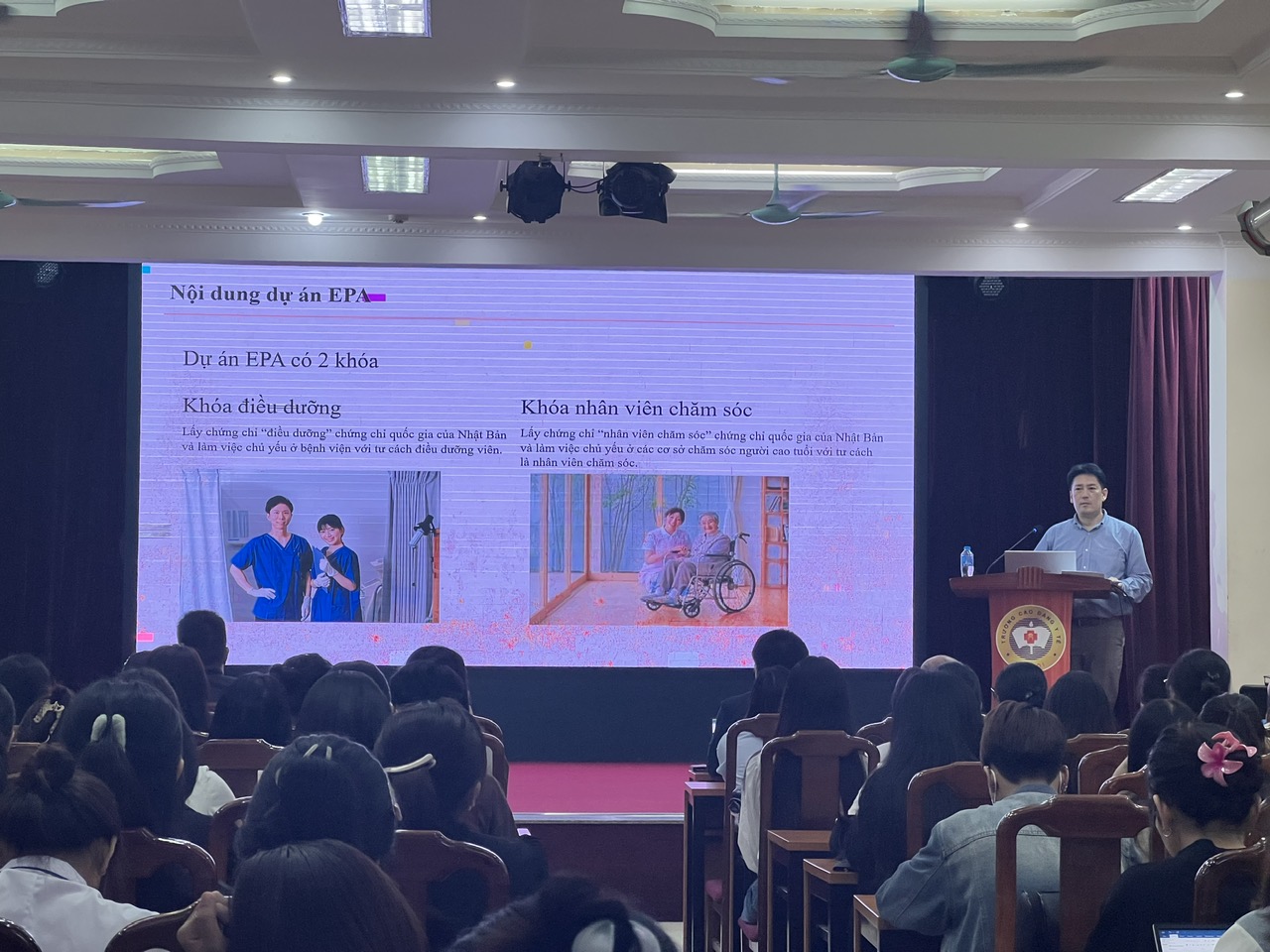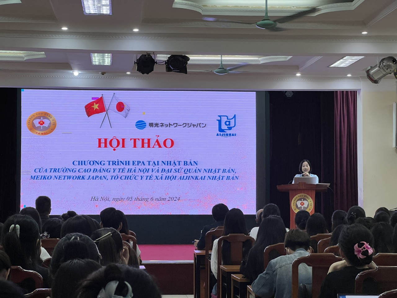 Cũng tại hội thảo, Ông Kaneda Yoshinori - Phó tổng phụ trách dự án EPA, đại diện công ty Meiko Network Japan đã chia sẻ với sinh viên Trường Cao đẳng Y tế Hà Nội về chương trình EPA. Theo ông, EPA là dự án của chính phủ Nhật Bản – Việt Nam dành cho các ứng viên hướng tới mục tiêu vừa làm việc tại các bệnh viện, viện dưỡng lão tại Nhật Bản và lấy được chứng chỉ quốc gia của Nhật Bản ngành điều dưỡng, nhân viên chăm sóc.