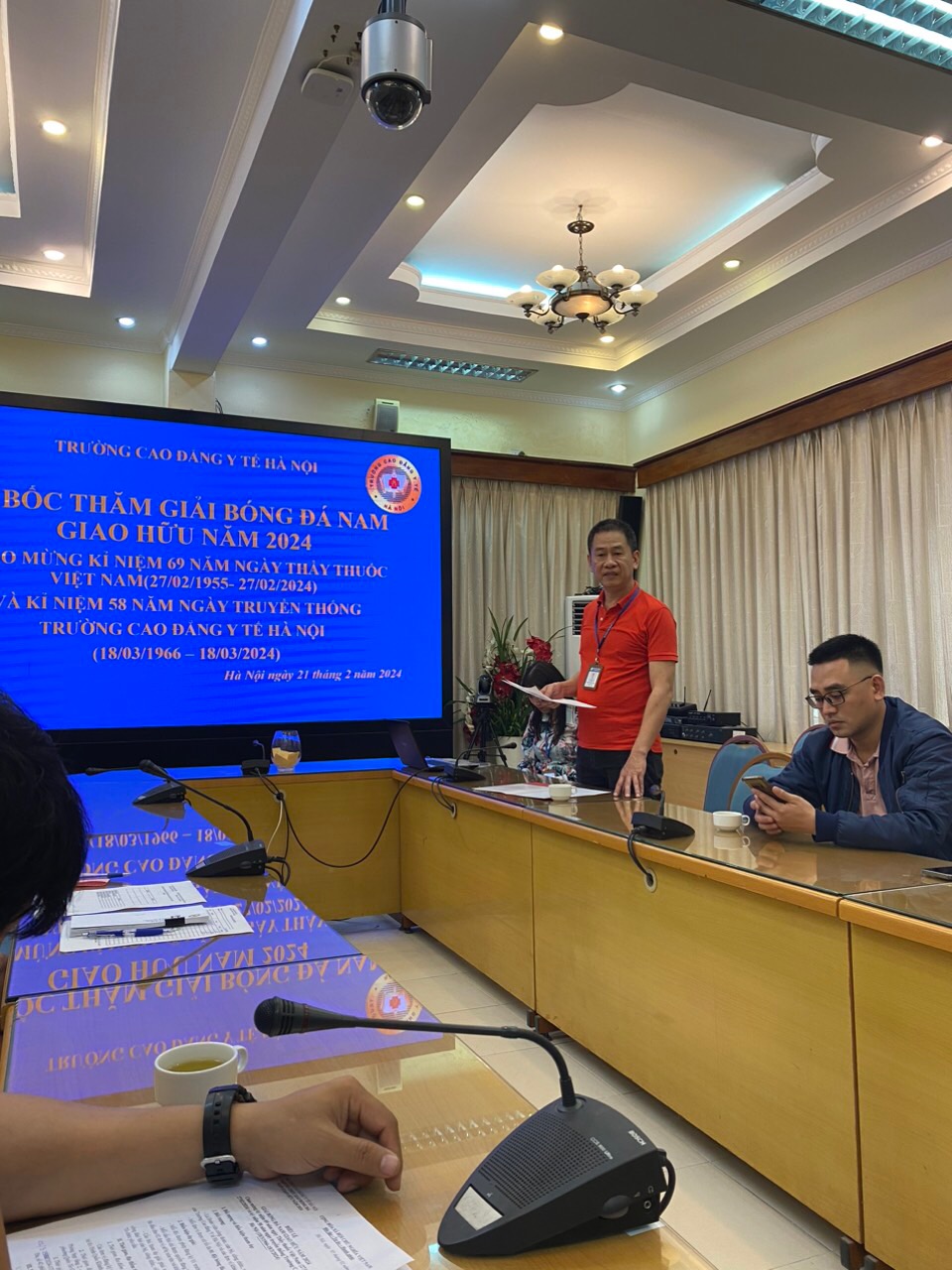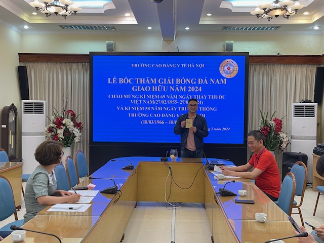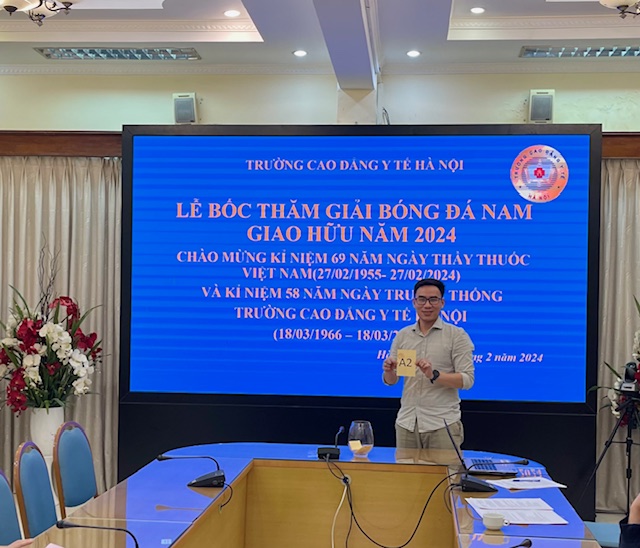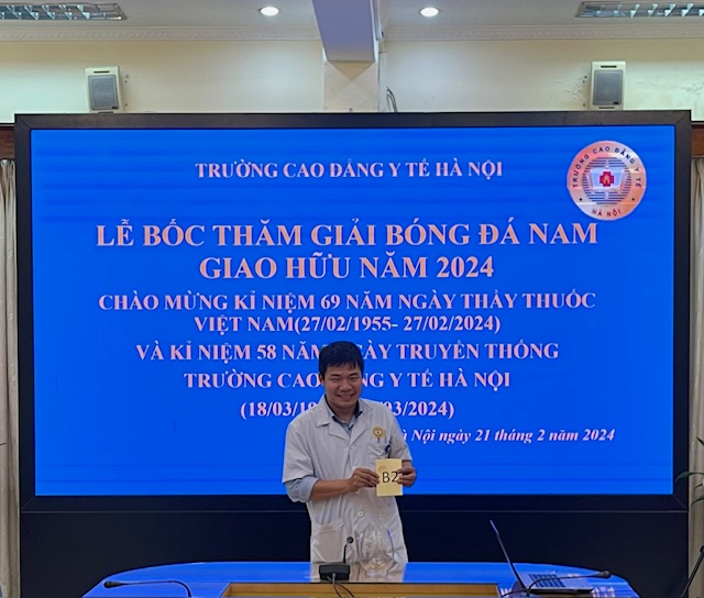 LỄ BỐC THĂM CHIA BẢNG GIẢI BÓNG ĐÁ NAM “TRƯỜNG CAO ĐẲNG Y TẾ HÀ NỘI VÀ MỘT SỐ BỆNH VIỆN, TRƯỜNG TRONG CỤM THI ĐUA CÔNG ĐOÀN- CUP 2024” CHÀO MỪNG KỶ NIỆM 69 NĂM NGÀY THÀY THUỐC VIỆT NAM (27/02/1955- 27/02/2024) VÀ 58 NĂM NGÀY TRUYỂN THỐNG TRƯỜNG CAO ĐẲNG Y TẾ HÀ NỘI (18/3/196- 18/3/2024)