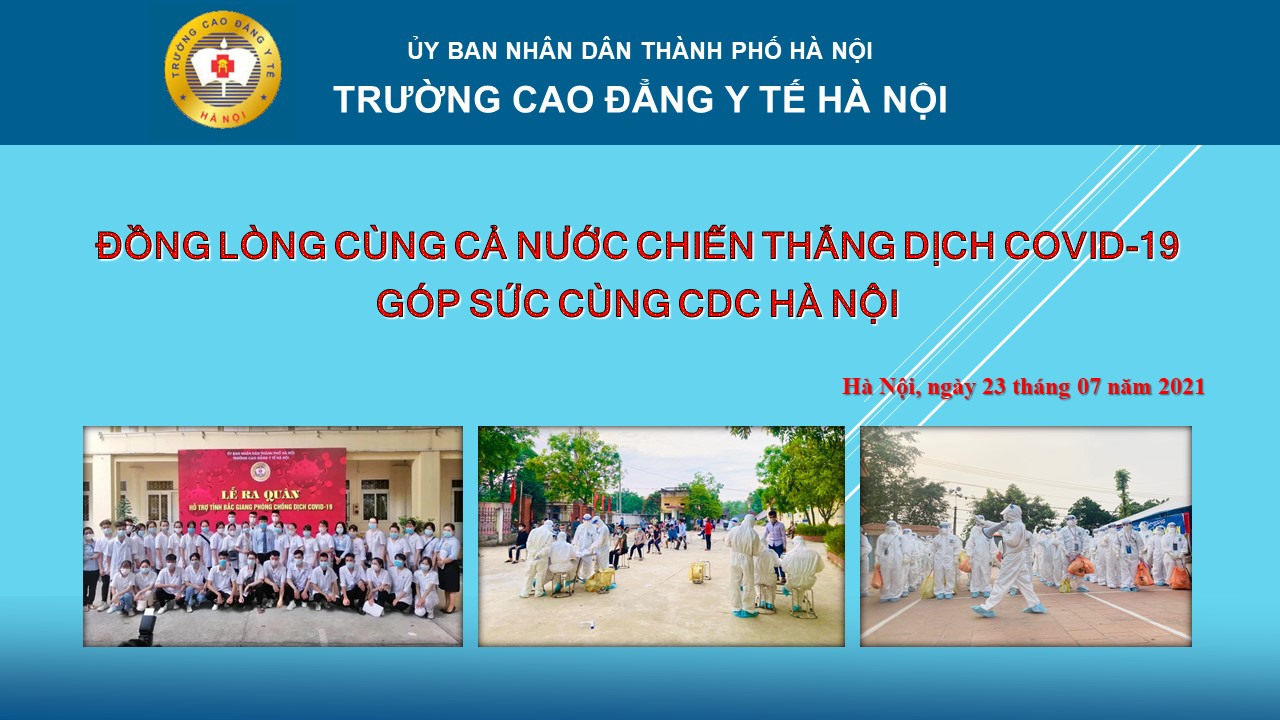 Với tinh thần “Cùng cả nước chung tay đẩy lùi dịch Covid-19”, Trường Cao đẳng y tế Hà Nội huy động đội sinh viên tình nguyện hỗ trợ cùng CDC Hà Nội trong thời gian tới trong công tác phòng, chống dịch Covid-19 tại CDC Hà Nội