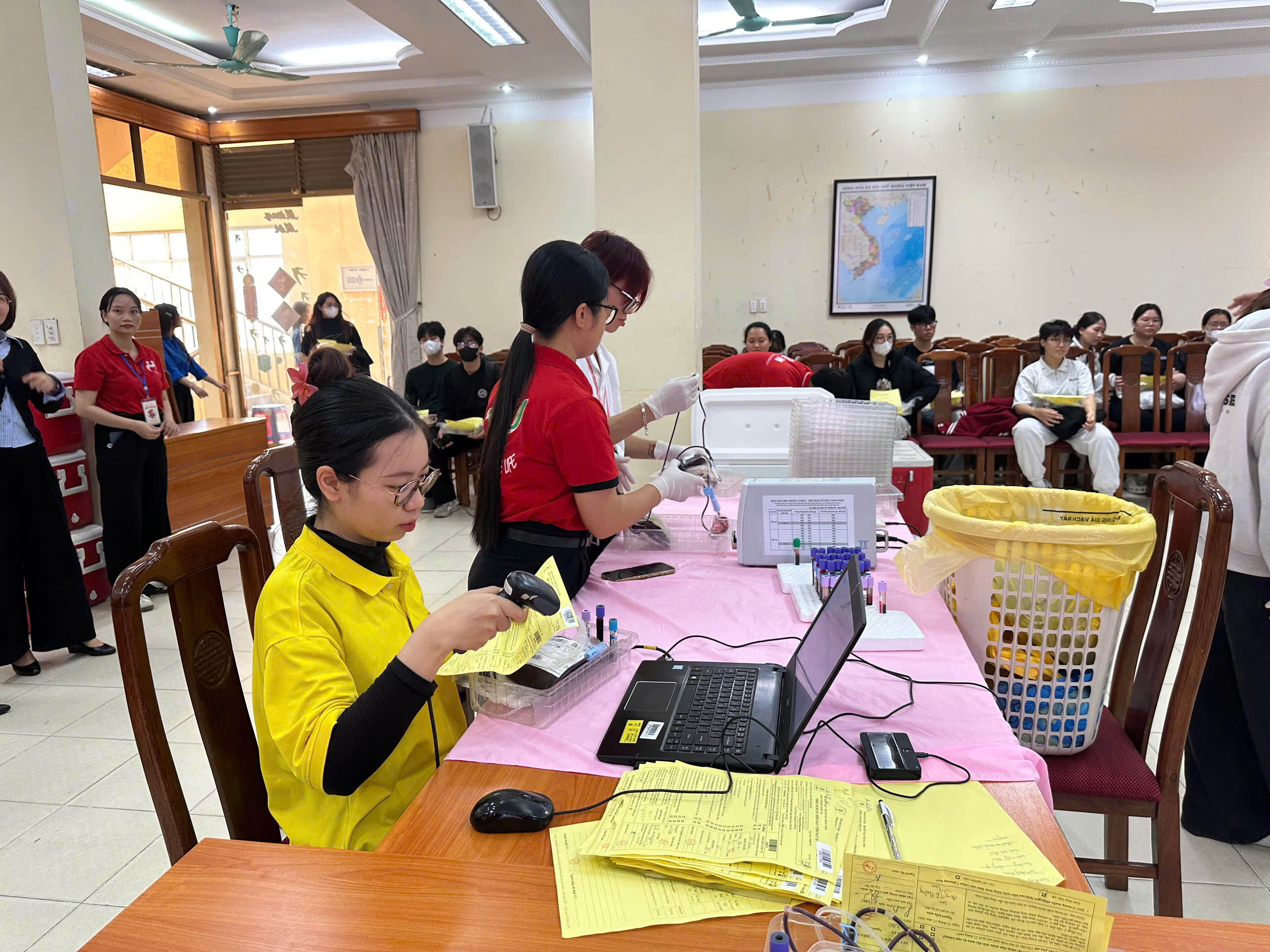 Ngay từ sáng sớm, sinh viên, giảng viên và người lao động Nhà trường đã có mặt đông đủ để đăng ký tham gia, kiểm tra sức khỏe và thực hiện hiến máu trong không khí sôi nổi, trật tự và đầy ấm áp. Nhiều sinh viên chia sẻ đây không chỉ là cơ hội được đóng góp một phần nhỏ bé giúp người bệnh vượt qua khó khăn mà còn là trải nghiệm đáng nhớ, giúp các bạn cảm nhận sâu sắc hơn giá trị của lòng nhân ái và tinh thần sẻ chia trong cuộc sống.