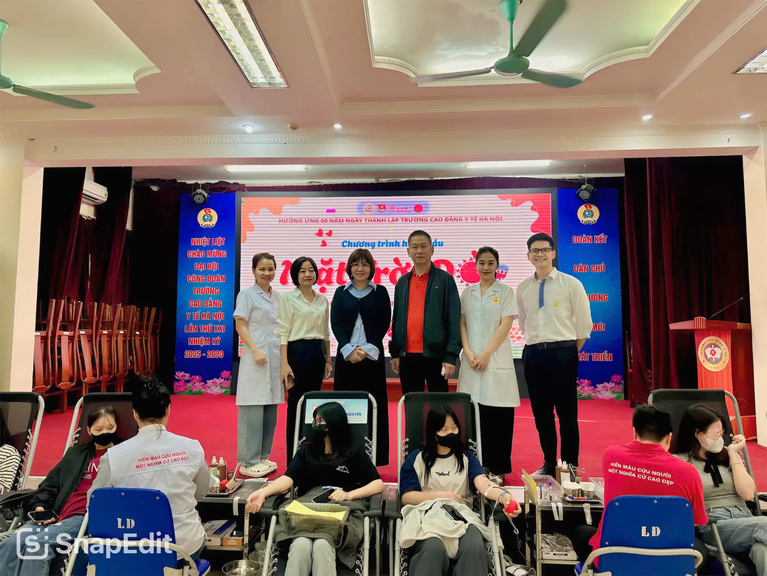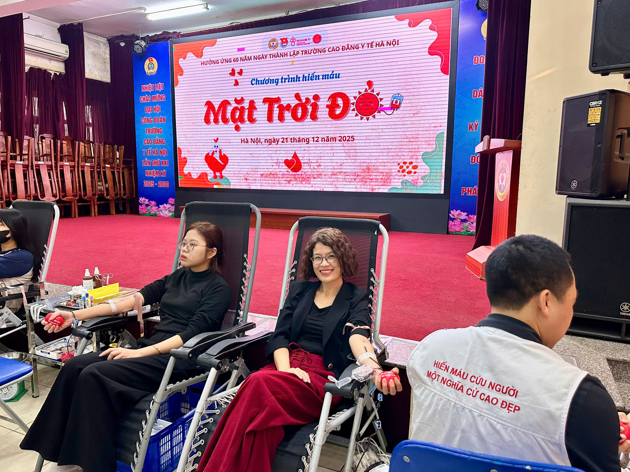 Hướng tới Kỷ niệm 60 năm Ngày truyền thống trường Cao đẳng Y tế Hà Nội (18/3/1966 - 18/3/2026), Công đoàn cùng Đoàn Thanh niên Nhà trường phối hợp với Viện Huyết học và Truyền máu Trung ương tổ chức Ngày hiến máu tình nguyện “Mặt trời đỏ” đợt 2- năm 2025. Hoạt động đã thu hút rất đông sinh viên, giảng viên và người lao động Nhà trường tham gia, thể hiện tinh thần nhân ái, trách nhiệm và nhiệt huyết của tuổi trẻ HMC trong các hoạt động vì cộng đồng. Kết quả: 319 đơn vị máu đã được tiếp nhận, góp phần quan trọng trong việc cứu chữa người bệnh.