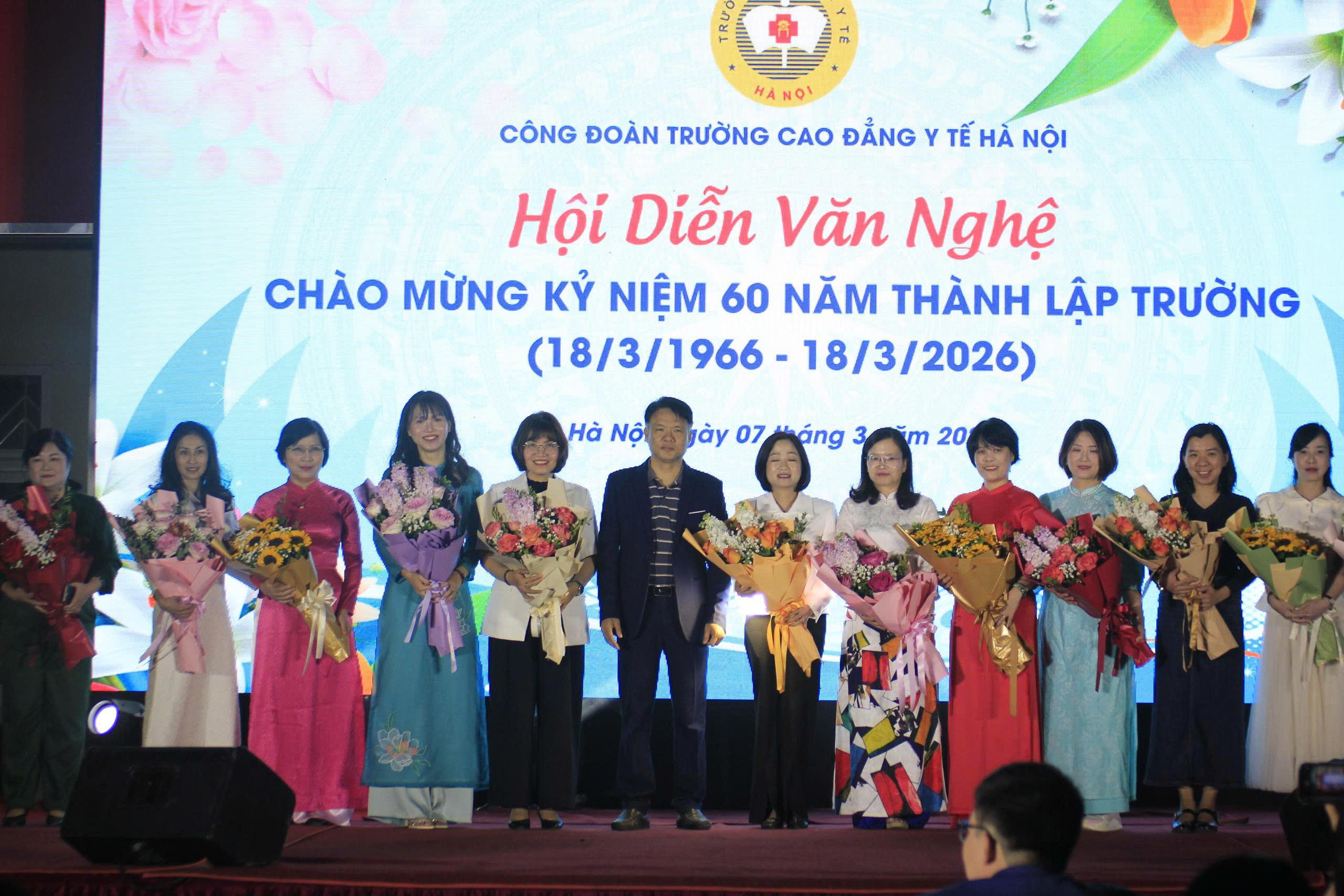 Phát biểu Khai mạc Hội diễn, TS. Phạm Văn Tân- Bí thư Đảng uỷ, Hiệu trưởng Nhà trường khẳng định: “Kỷ niệm 60 năm hình thành và phát triển Trường Cao đẳng Y tế Hà Nội là dịp để chúng ta tôn vinh tất cả những cống hiến, những giá trị của Nhà trường đối với lịch sử, đối với đất nước và xã hội”. TS. Phạm văn Tân biểu dương “các chuỗi hoạt động của Công đoàn Trường đã cùng tham gia và tổ chức các hoạt động kỷ niệm 60 năm bằng hình thức tổ chức Hội diễn văn nghệ, thể thao. Đây là một trong những hoạt động hết sức sôi nổi và có truyền thống trong lịch sử của trường Cao đẳng Y tế Hà Nội”. Qua đây, TS. Phạm Văn Tân- Bí thư Đảng uỷ, Hiệu trưởng Nhà trường đã gửi lời chúc sức khoẻ, hạnh phúc, thành công hơn nữa đến toàn thể nữ viên chức, người lao động và các nữ sinh toàn trường và tặng những bó hoa tươi thắm nhân Ngày Quốc tế Phụ nữ 8/3.