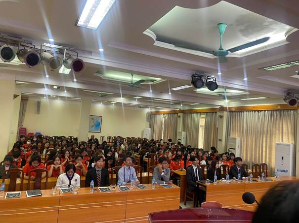 Tiếp tục buổi làm việc, Trường Cao đẳng Y tế Hà Nội đã phối hợp cùng Meiko Network Japan- đơn vị được ủy thác của Bộ Ngoại giao Nhật Bản tổ chức hội thảo “Giới thiệu về chương trình dự án EPA cho sinh viên ngành điều dưỡng” với gần 200 sinh viên ngành điều dưỡng của trường tham dự