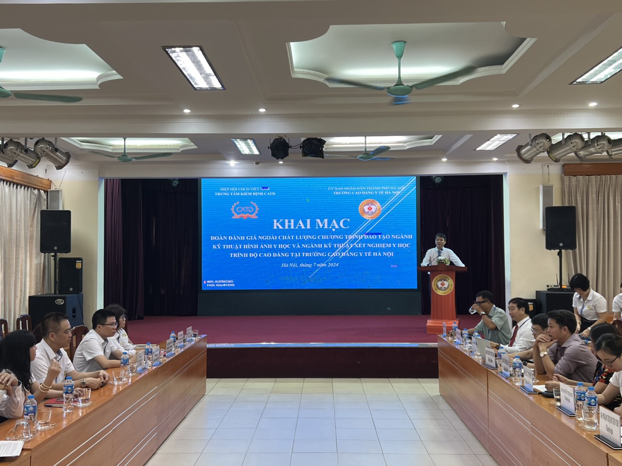 Ngày 30/07/2024, tại Trường Cao đẳng Y tế Hà Nội (Trường), Trung tâm Kiểm định CATD (Trung tâm) tiến hành khai mạc đợt khảo sát chính thức đánh giá ngoài chất lượng chương trình đào tạo nghề Kỹ thuật hình ảnh y học và Kỹ thuật xét nghiệm y học trình độ Cao đẳng.