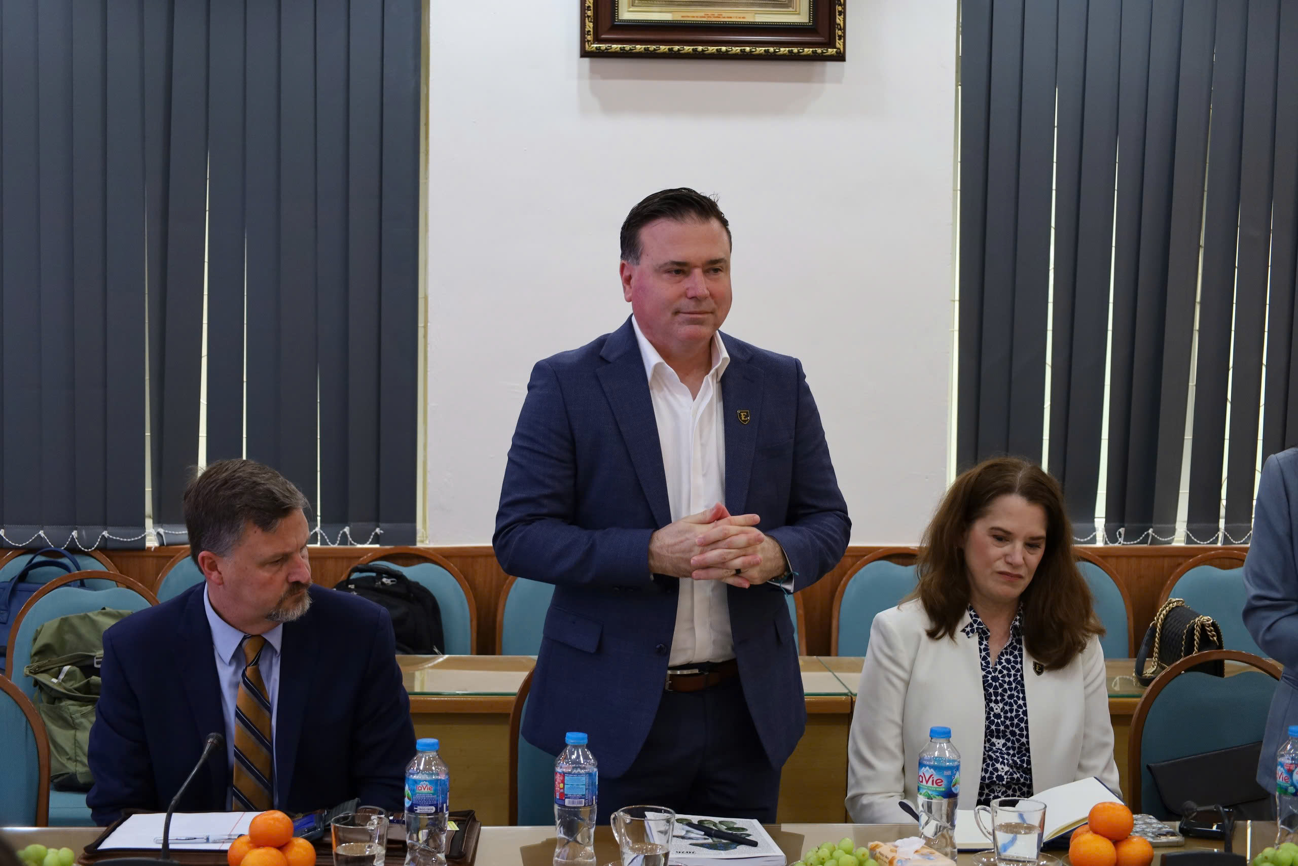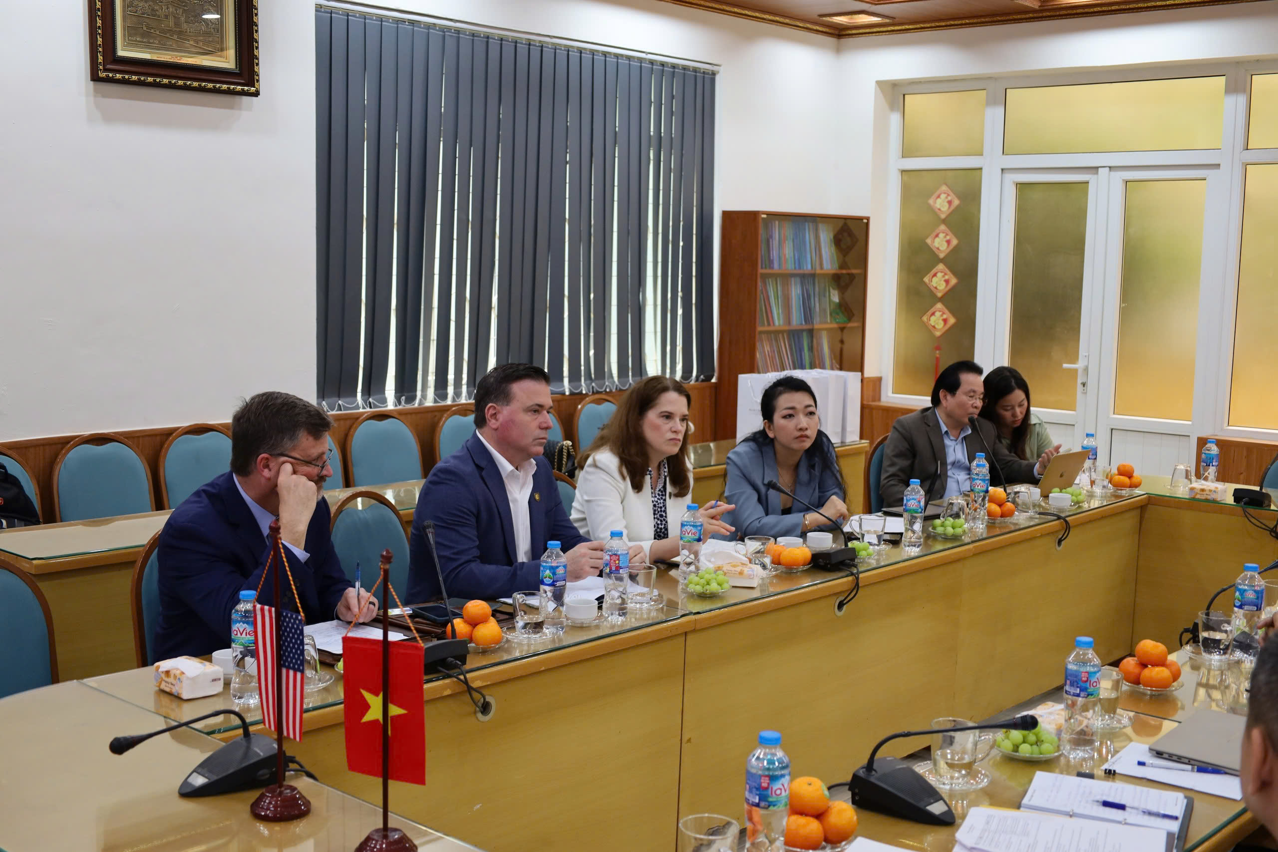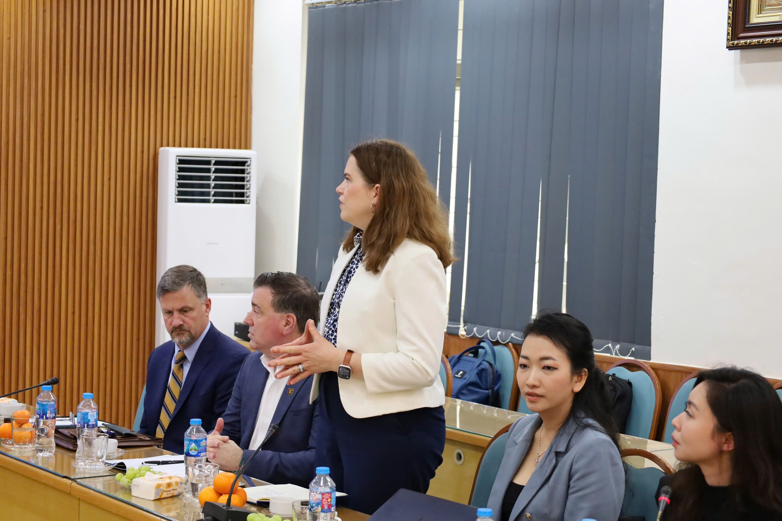 Bên cạnh đó, hai trường đã thảo luận và xác định các lĩnh vực hợp tác như: Nghiên cứu khoa học, trao đổi giảng viên/sinh viên, chương trình liên kết đào tạo. Các nội dung hợp tác giữa hai trường sẽ được thảo luận và cụ thể hóa trong các buổi làm việc tiếp theo. Buổi tiếp đón đoàn Trường Đại học East Tennessee State University (ETSU) đã diễn ra thành công tốt đẹp, mở ra nhiều cơ hội và triển vọng cho hợp tác lâu dài gắn bó giữa bên.