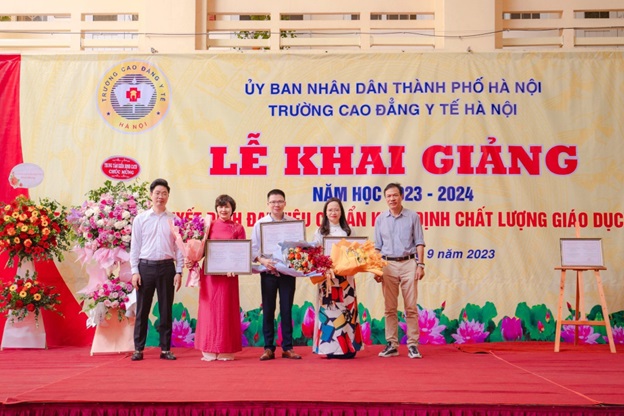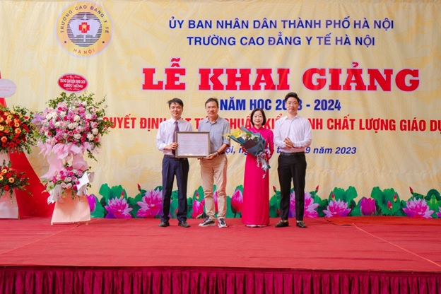 Sáng ngày 8/9/2023, tại trường Cao đẳng Y tế Hà Nội (Trường), Trung tâm Kiểm định CATD (Trung tâm) tiến hành trao Giấy Chứng nhận đạt tiêu chuẩn kiểm định chất lượng cho nhà trường và 03 Chương trình đào tạo ngành Hộ sinh, Điều Dưỡng, Dược trình độ cao đẳng. Lễ đón nhận giấy chứng nhận thêm long trọng và ý nghĩa hơn nhiều trong không khí rộn ràng, reo ca của một mùa thu mới, Tập thể thầy và trò Trường Cao đẳng Y tế Hà Nội tưng bừng tổ chức Lễ Khai giảng đón năm học mới 2023-2024.