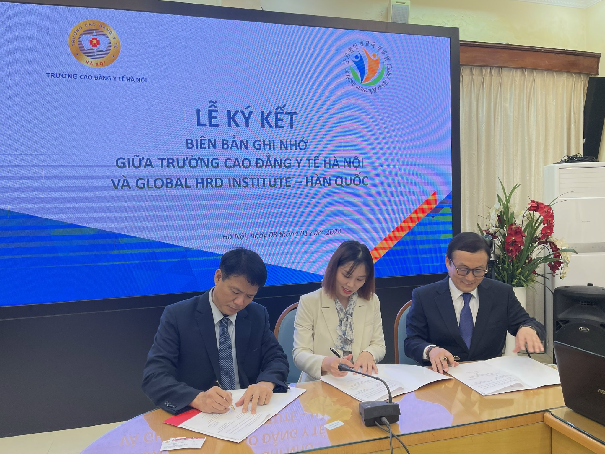 Để đáp ứng nhu cầu hiện tại, Trường Cao đẳng Y Hà Nội đã ký kết biên bản hợp tác với Viện Phát triển nhân lực toàn cầu- đơn vị phát triển nội dung giáo dục tiếng Hàn Online- Offline chất lượng cao cùng Công ty cổ phần nhân lực Hòa Bình để triển khai chương trình đạo tạo tiếng Hàn, đồng thời công nhận là một tín chỉ trong chương trình học chính thức.