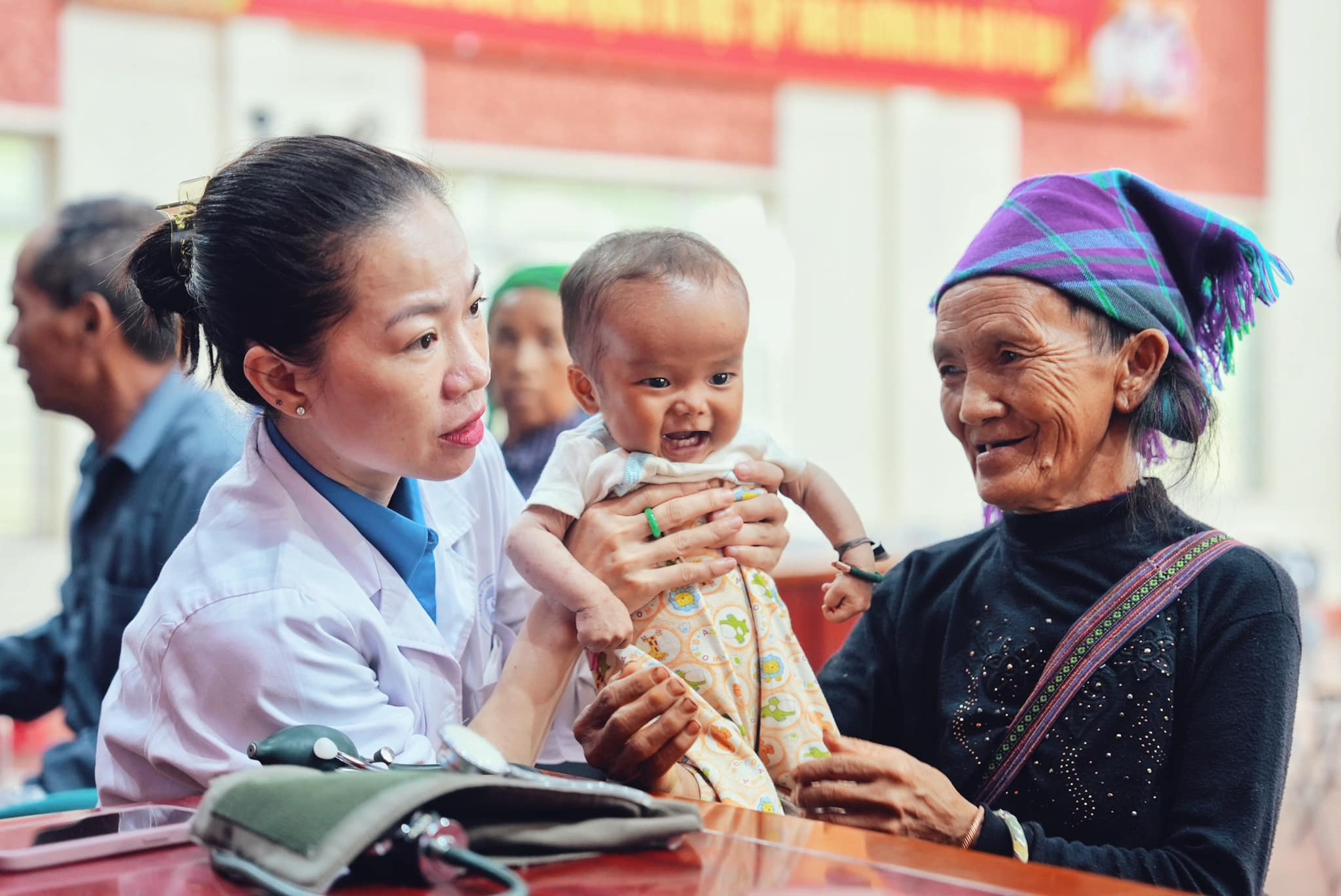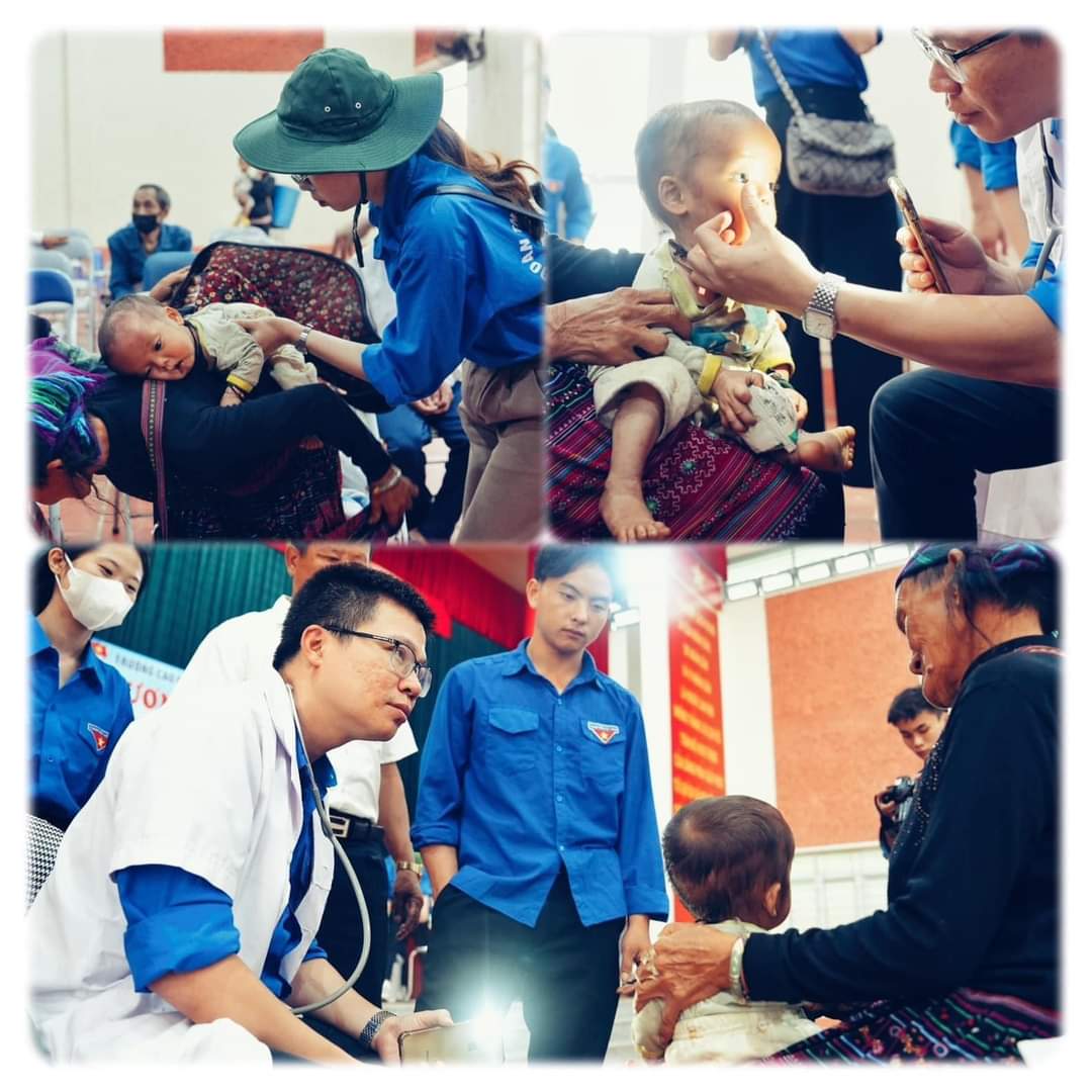 Thầy và trò 𝐓𝐫𝐮̛𝐨̛̀𝐧𝐠 𝐂𝐚𝐨 đ𝐚̆̉𝐧𝐠 𝐘 𝐭𝐞̂́ 𝐇𝐚̀ 𝐍𝐨̣̂𝐢 chúng tôi đã rất xúc động khi thấy bà nội nhỏ bé địu em bé nhỏ xíu xiu đến UBND xã Dền Thàng để tham gia chương trình Tư vấn, cấp phát thuốc cho người cao tuổi. Bé trai hơn 1 tuổi bị suy dinh dưỡng và bị viên da, quần áo mặc không được sạch sẽ và cũ. Chúng tôi đã nhanh chóng chọn cho em bộ quần áo vừa vặn, làm vệ sinh cơ thể cho bé, khám cho em bé và tặng một số loại thuốc, thực phẩm chức năng phù hợp với bé và bà nội của em.