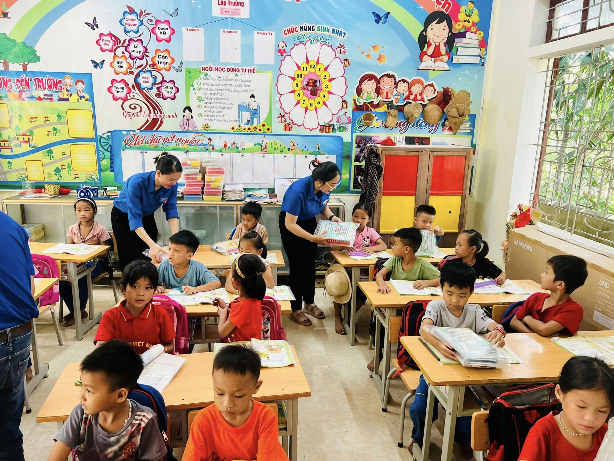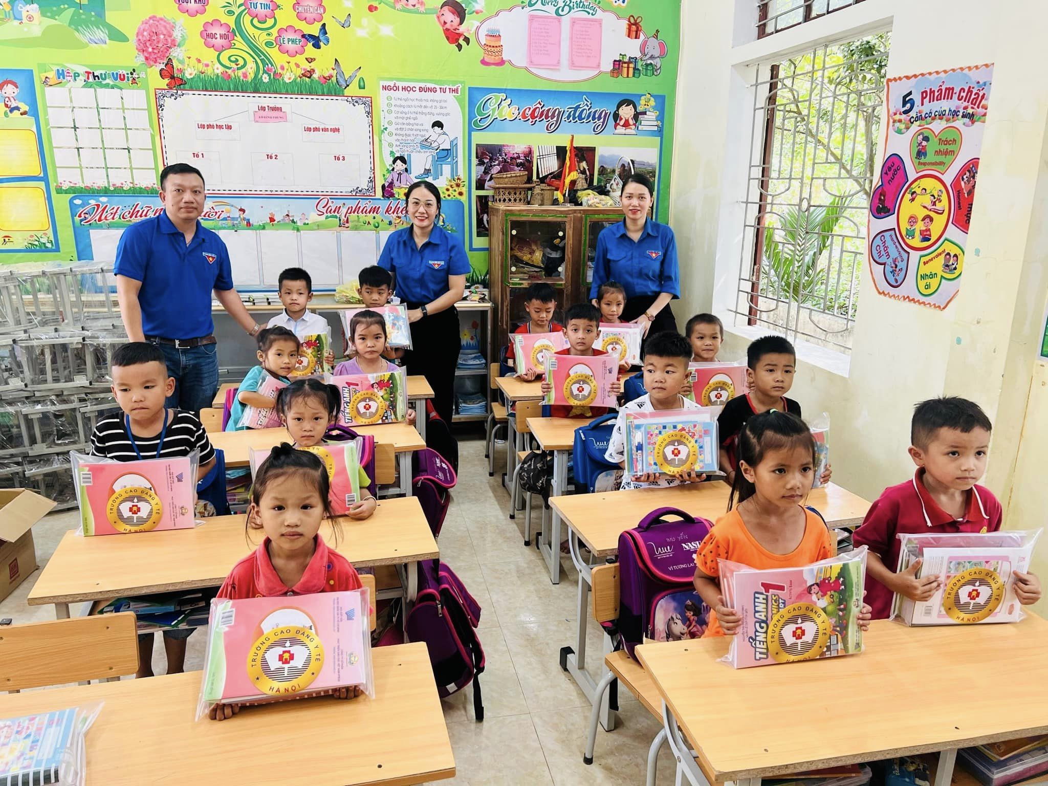 Tặng 102 suất quà gồm sách tiếng anh, SGK, đồ dùng văn phòng phẩm cho học sinh;