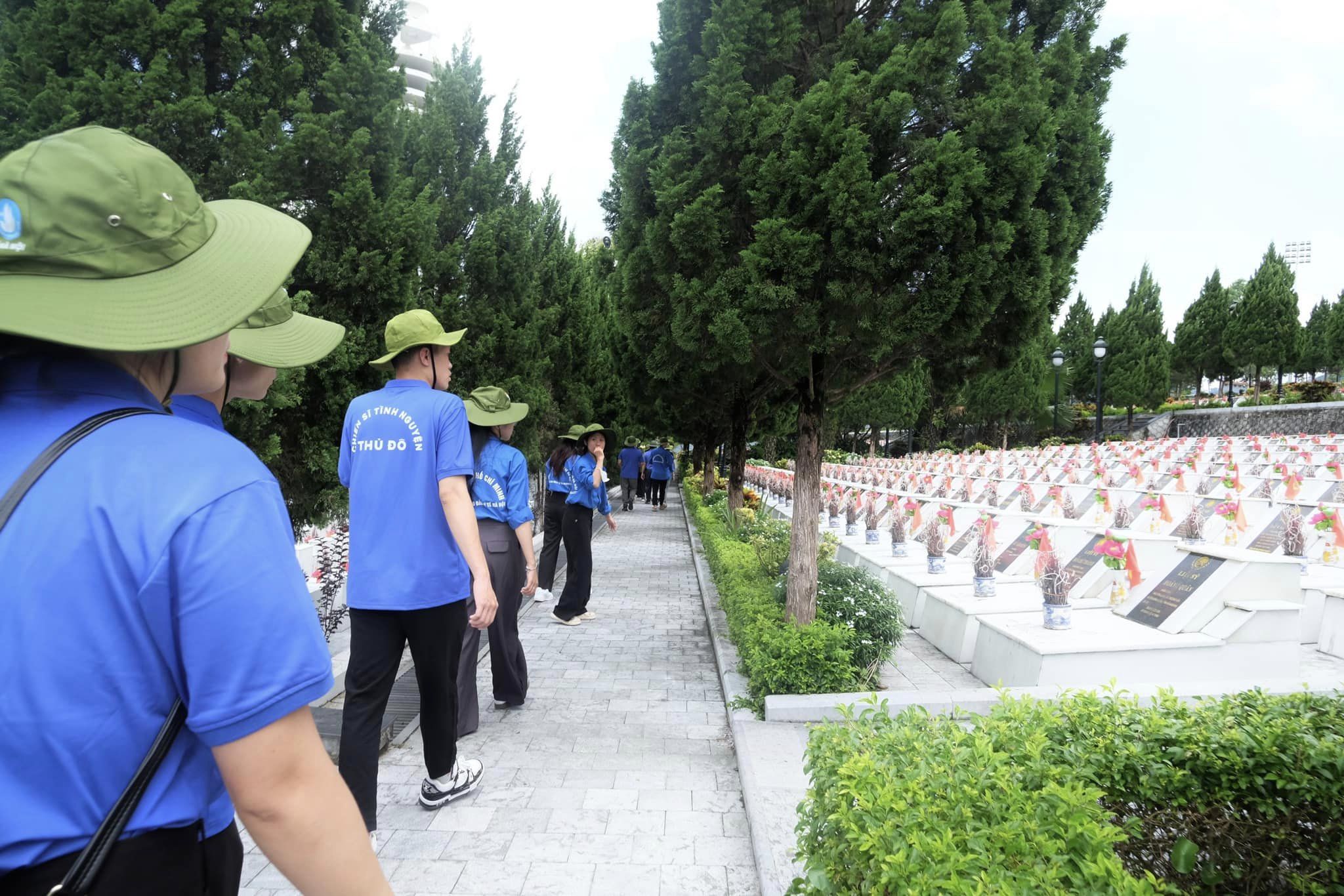 Trong không khí trang nghiêm, thành kính, Đoàn đã thực hiện nghi thức dâng hương - những nén hương bày tỏ lòng thành kính, sự biết ơn vô bờ bến đối với những "người con" đã mãi mãi nằm lại với đất mẹ để mang về sự bình yên cho cuộc sống hôm nay. Chắc chắn rằng Hà Giang, sự xa xôi cách trở của khoảng cách địa lý hay Cái nắng nóng gay gắt của tháng 7 cũng không thể làm nản lòng, làm chùn bước thanh niên Trường Cao đẳng Y tế Hà Nội đến với nghĩa trang Quốc gia Vị Xuyên. Với chúng tôi, đây chính là nơi nhắc nhở mỗi người dân Việt rằng " Tên các anh đã viết thành tên đất nước".