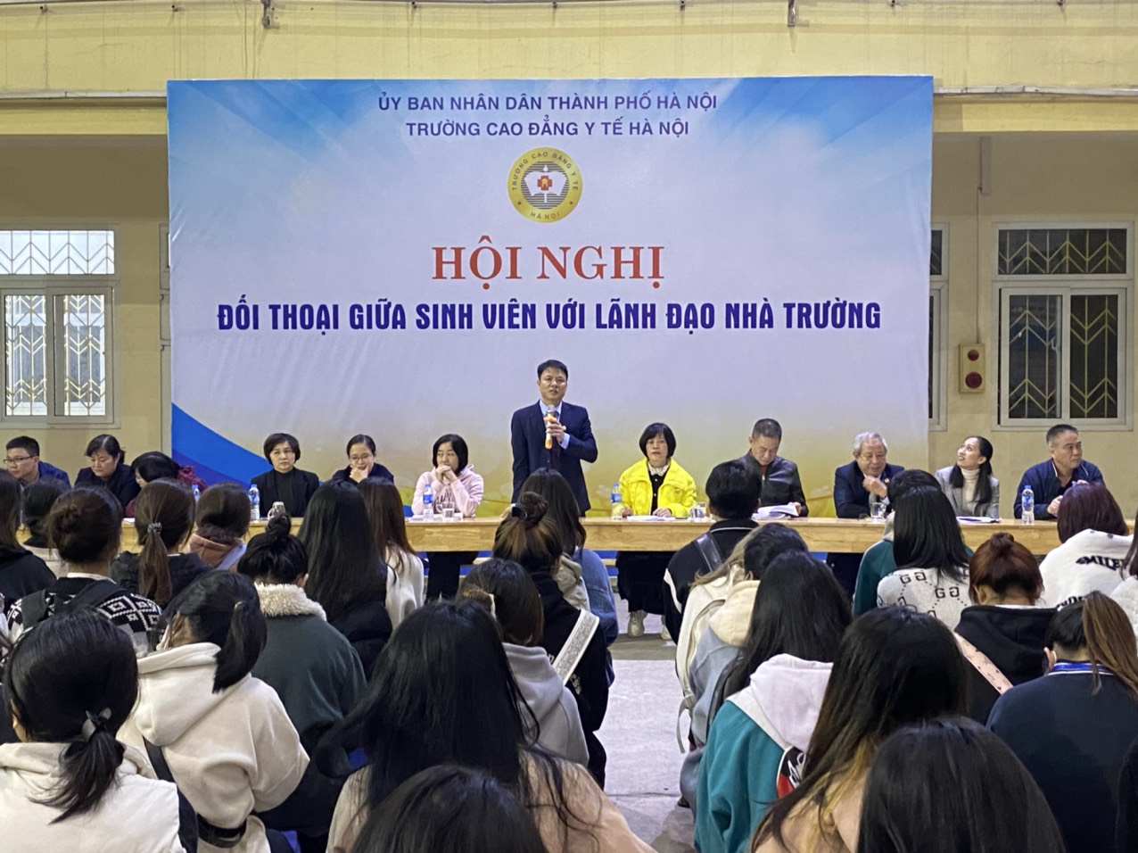 Để nắm bắt và giải quyết kịp thời tâm tư, nguyện vọng của sinh viên đang học tại trường, từ 03/01/2023 - 05/01/2023, nhà trường đã tổ chức “Hội nghị đối thoại giữa sinh viên với lãnh đạo nhà trường”.