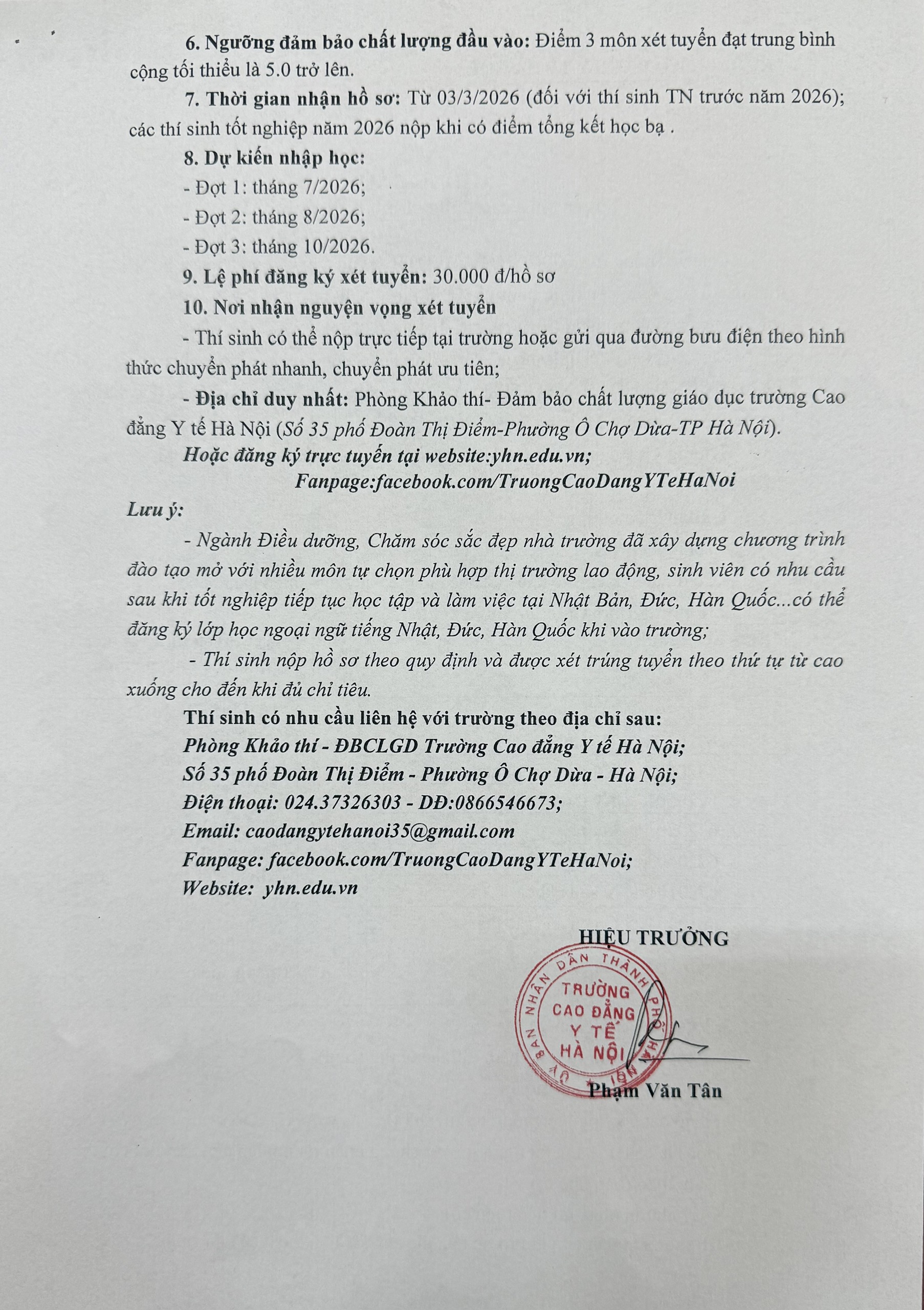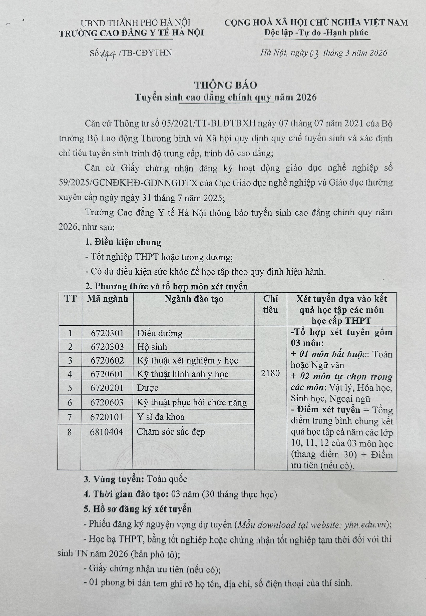 Thông Báo Tuyển Sinh Cao Đẳng Chính Quy Năm 2026